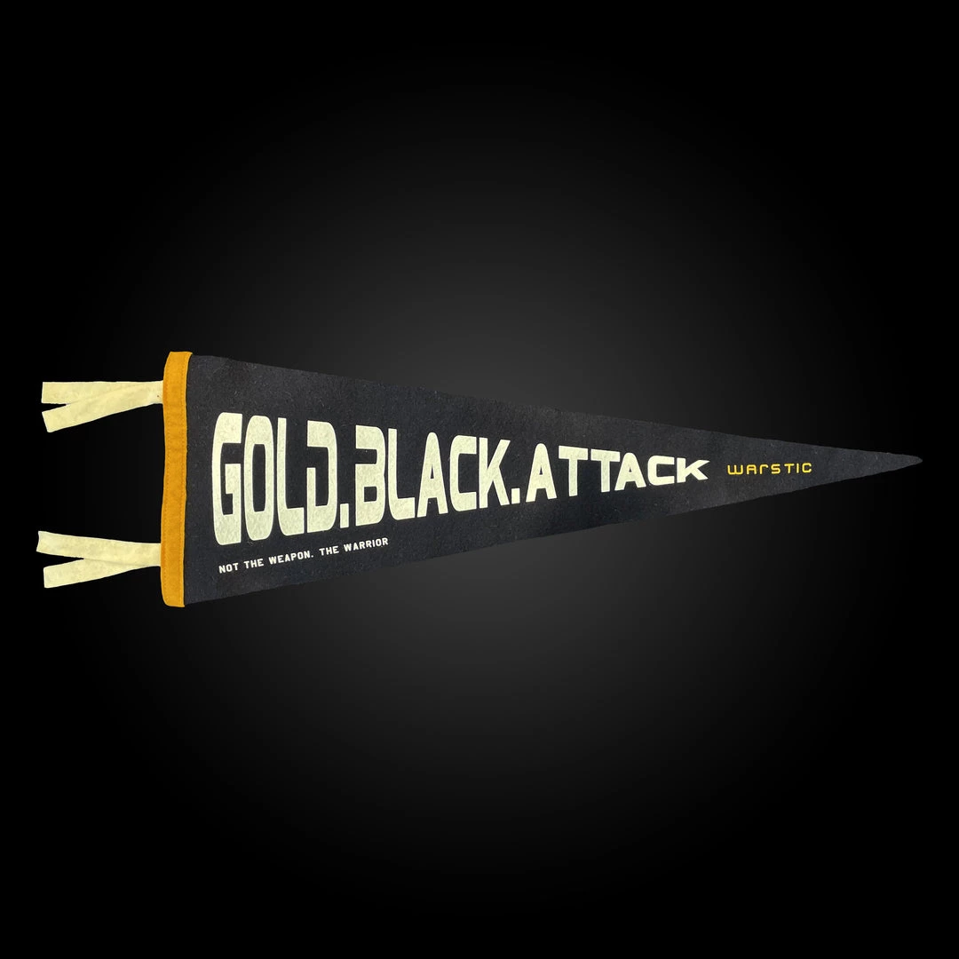 Made by Oxford Pennant in Buffalo, New York, the Gold Black Attack Pennant is an ode to our battle cry. Its modern block font has a space age feel, getting you pumped about what the future has in store as you gaze at it on your wall.