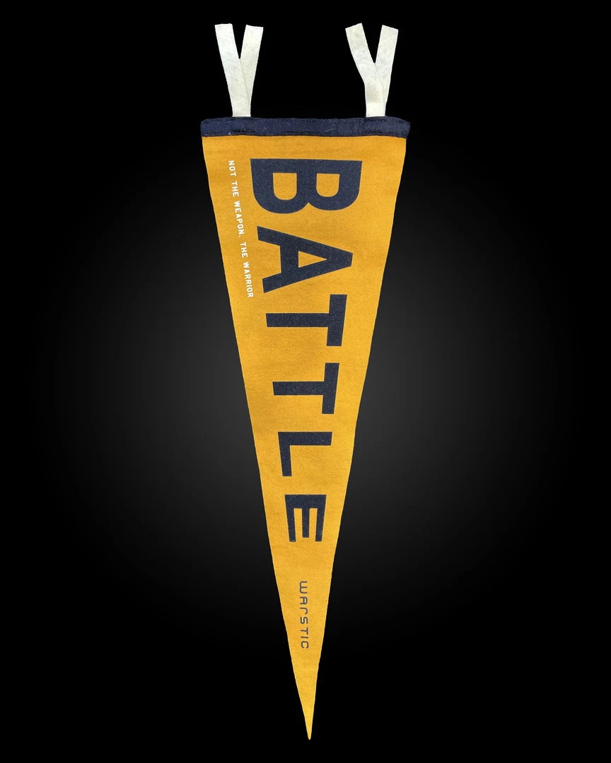 Made by Oxford Pennant in Buffalo, New York, the Battle Pennant sums up the Warstic mentality. Every pitch, every at bat, every day. Approach every adversity with a mindset to win, or learn from your shortfalls.