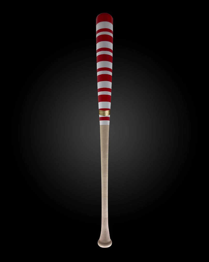 This bat is one of a kind, made start to finish in the Lathe and Stain Room at the Warstic Flagship Store and Headquarters in Dallas. With its red barrel and white stripes, this bat is perfect for holiday gifting. Fully customizable, if you purchase this bat, we’ll add your personalized engraving to the barrel to make it even more special!