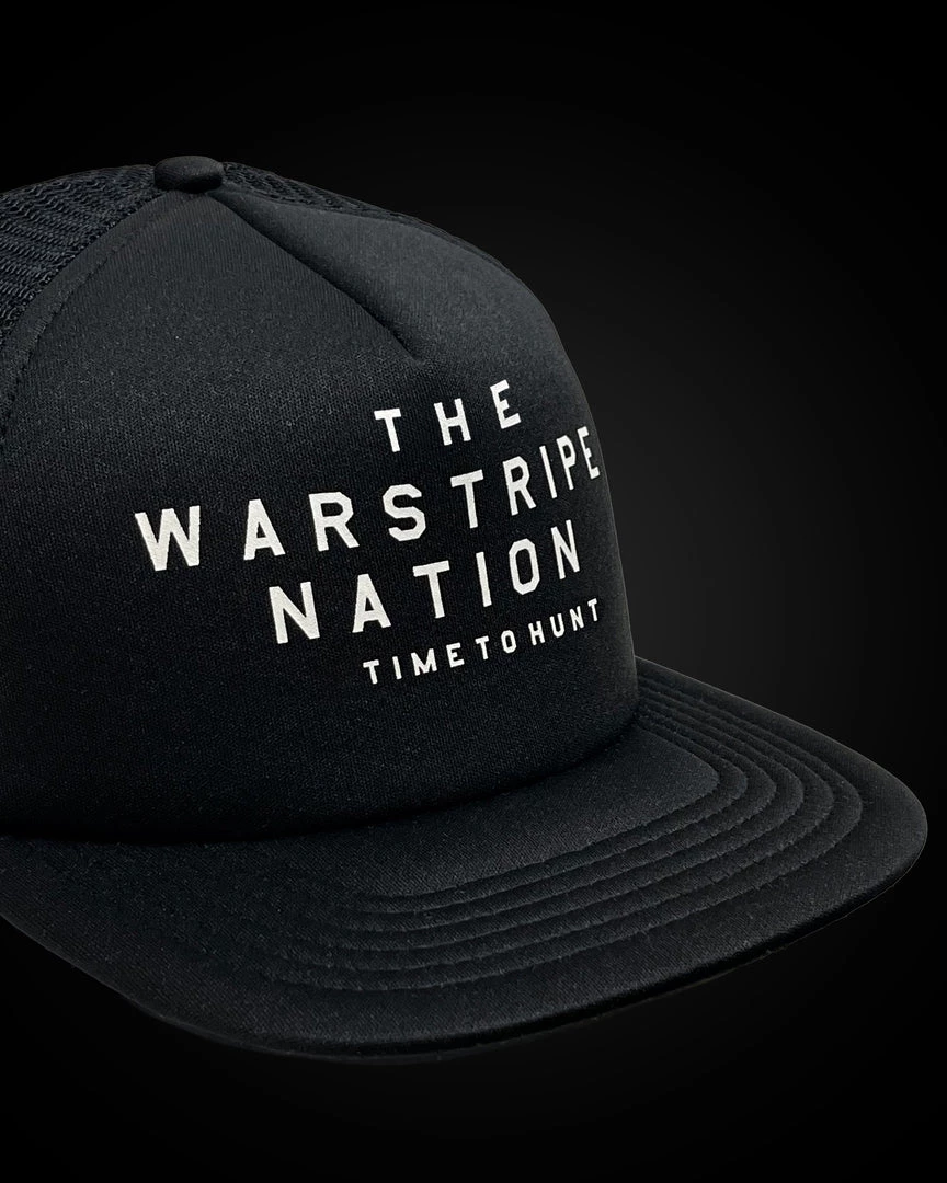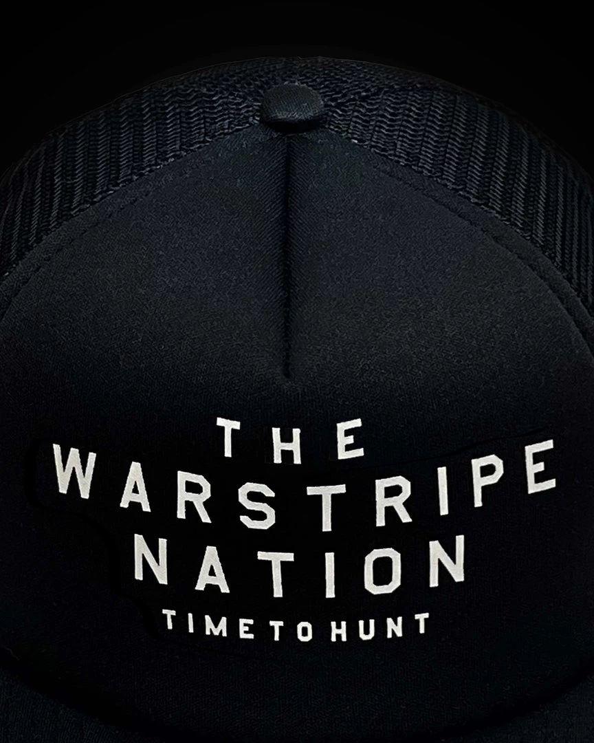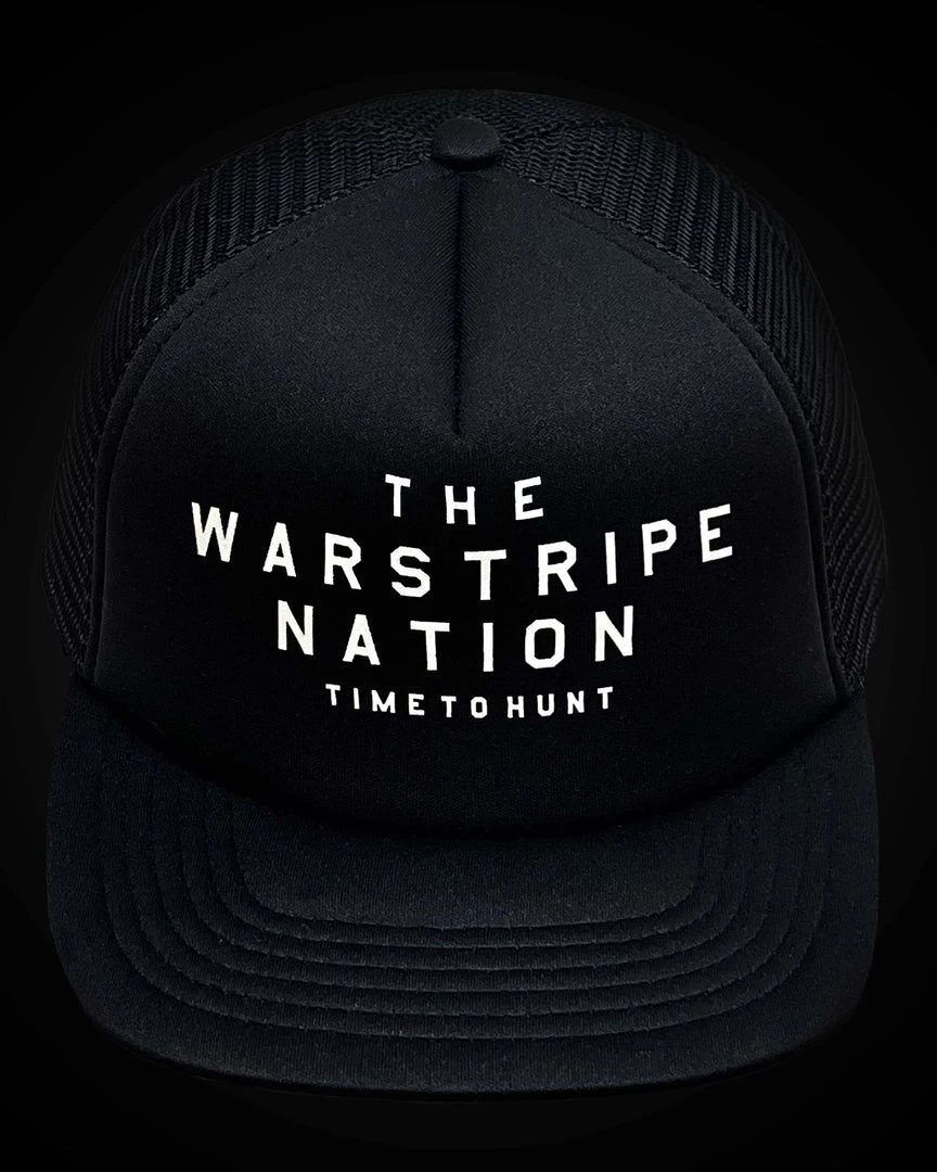The Warstic Trucker Snapback Black (Warstripe Nation) is for those who embody the Warstic mentality. Warstripe Nation is what we call the community of people who seek the Warrior’s Mindset with us. “The Warstripe Nation” is boldly written in white on the black panel, with “Time to Hunt” beneath. Five panel design; mesh back with polyester front. Snapback. One size fits most.