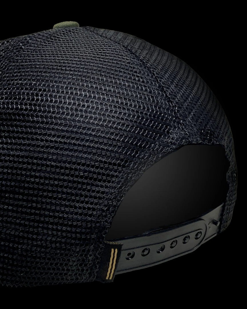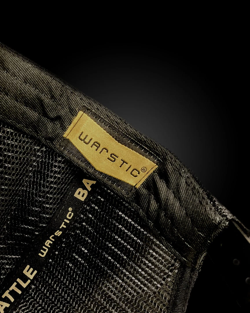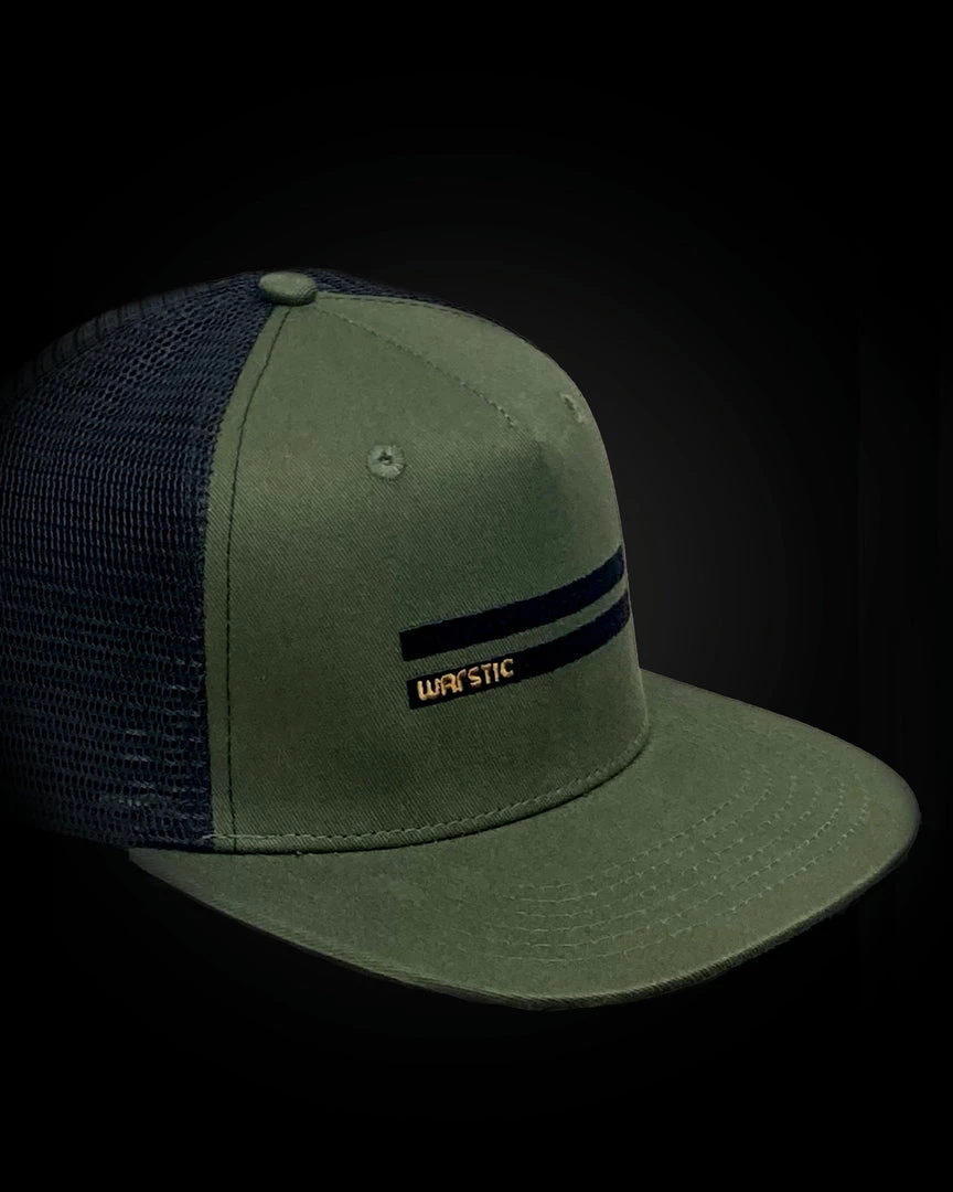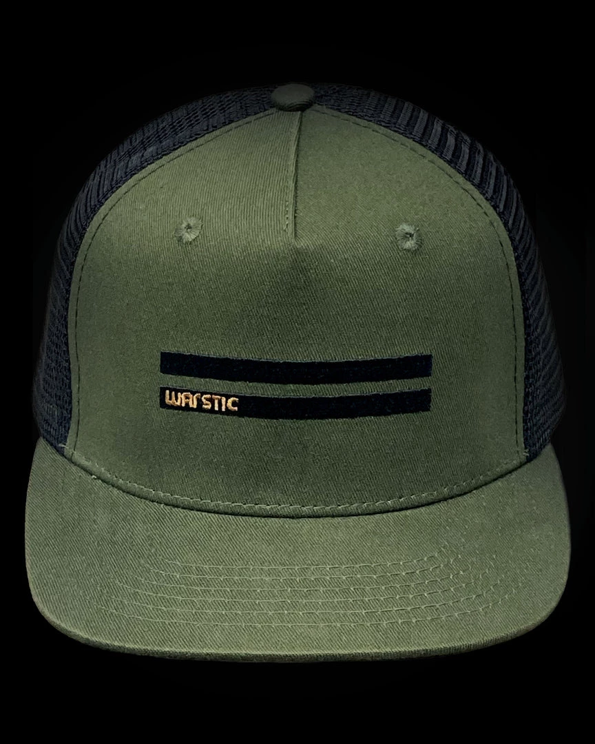 The Warstic Off-Season Snapback Army Green/Black (Warstripe) features our Warstripe logo embroidered in gold across the front of the hat. Six panel design; mesh back with polyester front. Snapback. One size fits most.