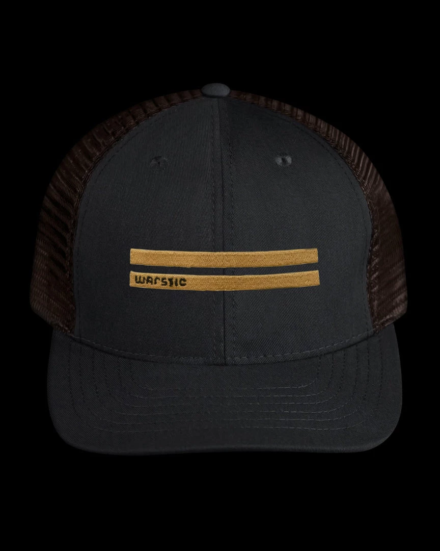 The Warstic Off-Season Snapback Black/Tobacco (Warstripes) features gold embroidered warstripes. Six panel design; mesh back with polyester front. Snapback. One size fits most.