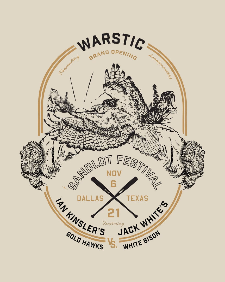 Poster designed for the Warstic Grand Opening and Sandlot game on November 6, 2021