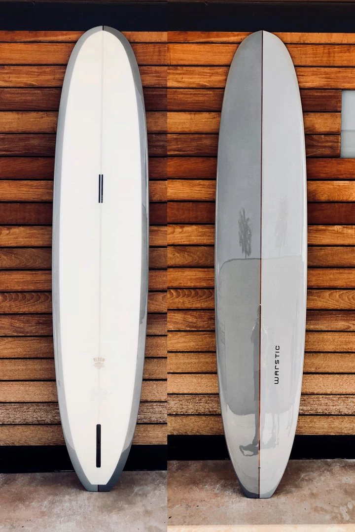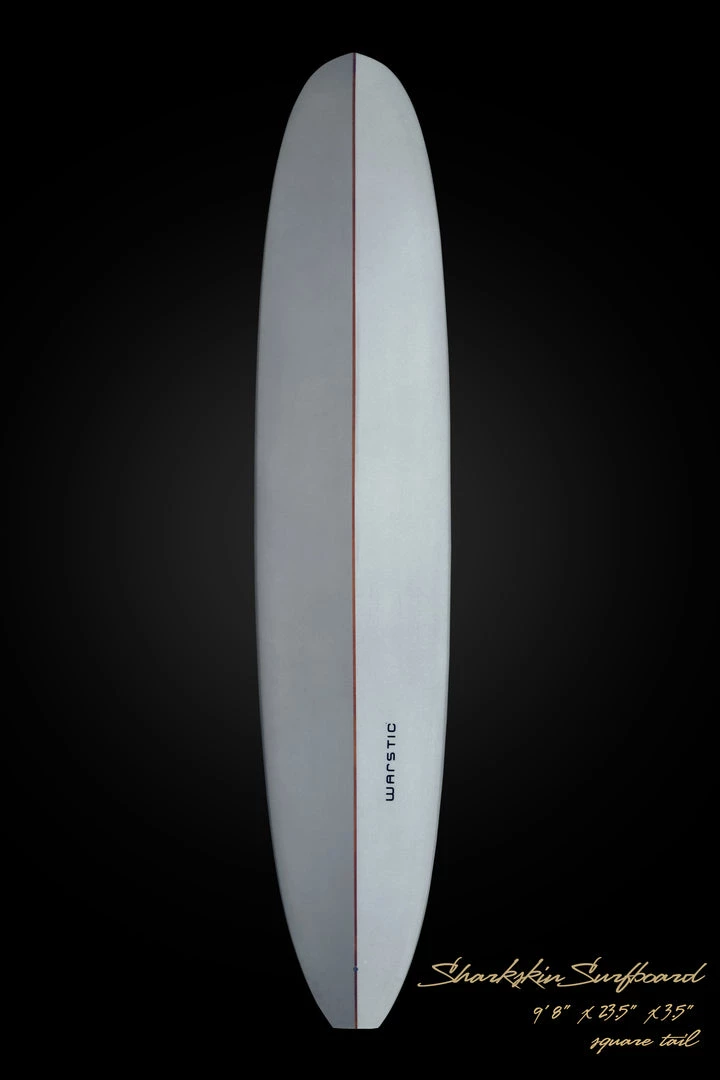 The Warstic Sharkskin Surfboard x Album Surf is made-to-order and handcrafted in San Clemente, California. Designed by Warstic Founder and Design Director @onefastbuffalo as his personal stic this board combines old school every day glider style with striking modern 2 tone look. Made with traditional riding in mind, trimming and camping out on the nose. Flat entry and mid-section rocker, accelerates and flips a bit off the tail. Moderate nose concave, 60/40 rails. Effortless glide and trim.