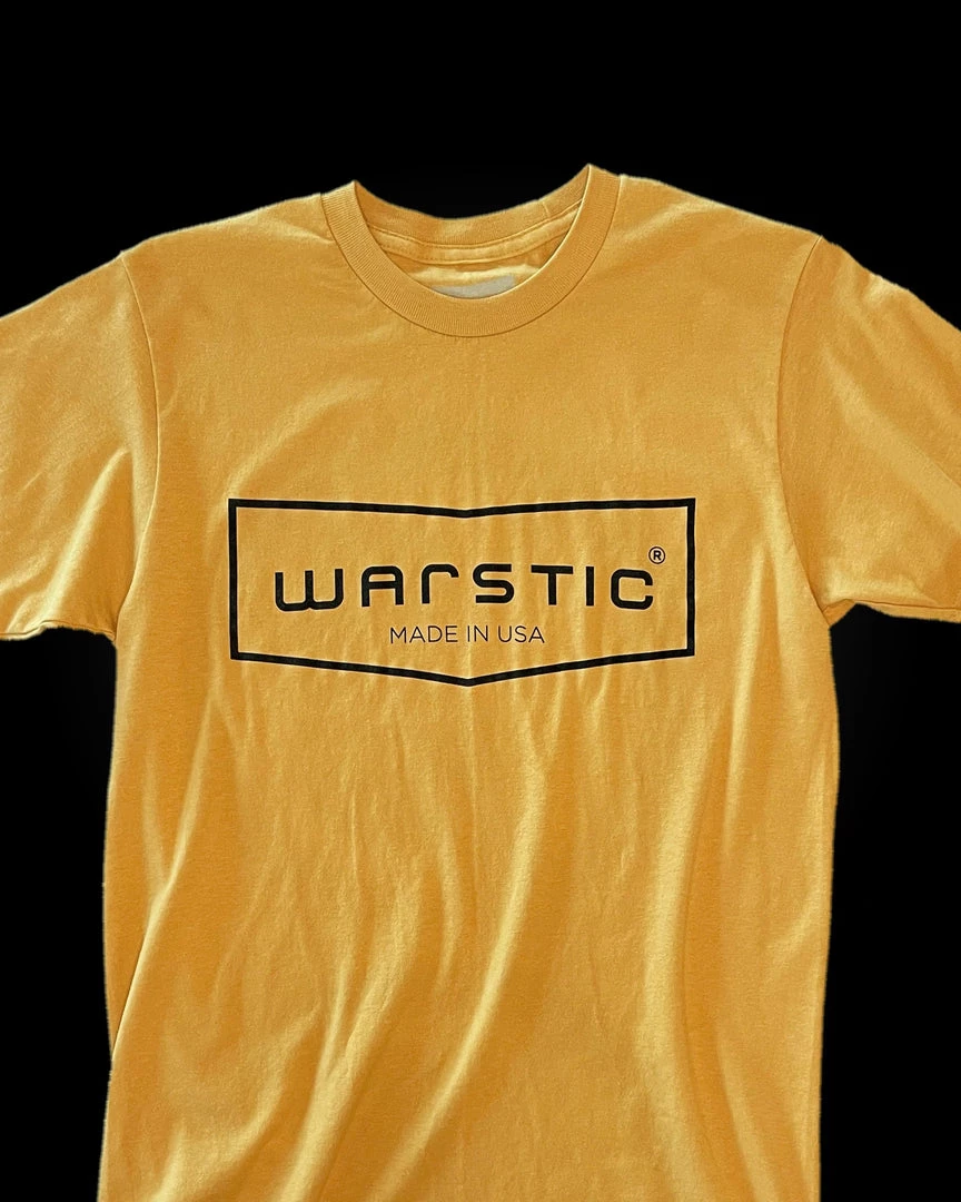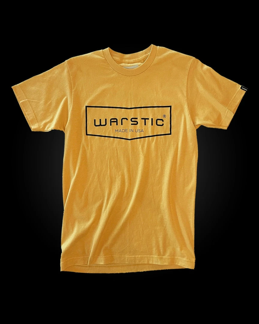 The Warstic Chevron Tee (Gold) has an inverted take on our classic chevron logo. With its clean, crisp lines, it stands out against the gold of the shirt.