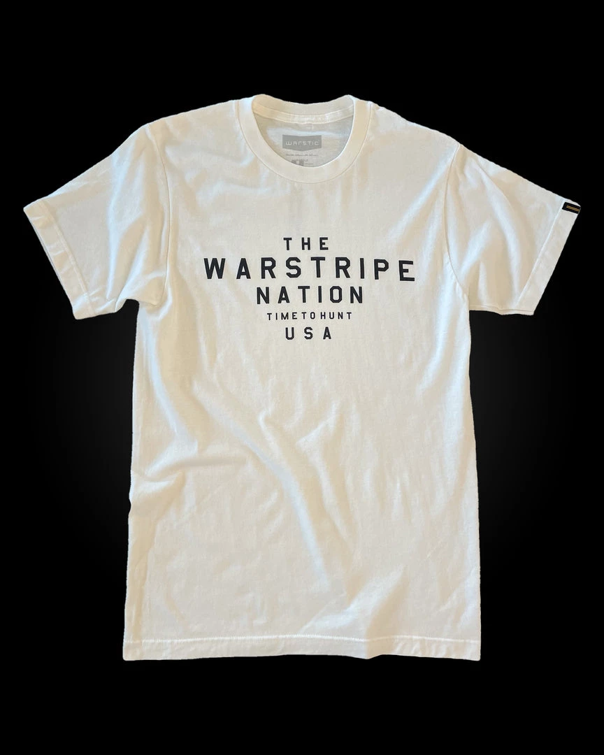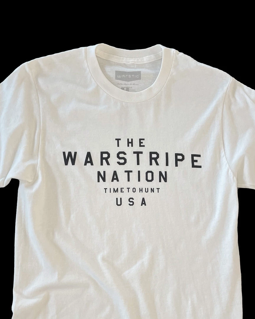This shirt is for those who embody the Warstic mentality. Warstripe Nation is what we call the community of people who seek the Warrior’s Mindset with us. Featuring a vintage white base with black block lettering, you are letting others know you are all in. You play and live with full-hearted intent and possess a clear sight with the mindset of the hunter.