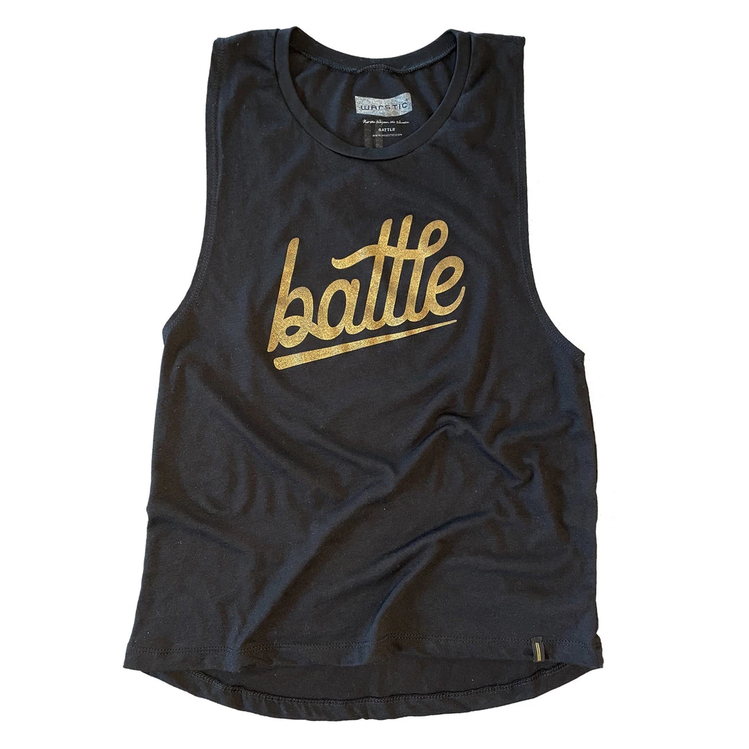 The Warstic® Battle Women’s Tank (Black) is a staple of our culture and belief system. A simple word commonly heard in baseball that reflects life beyond the game. The word “battle” goes straight to the heart of the daily human experience. It’s certainly a mentality that isn’t just about being combative, but rather about deciding to live on. To fight. To get up. To keep going.