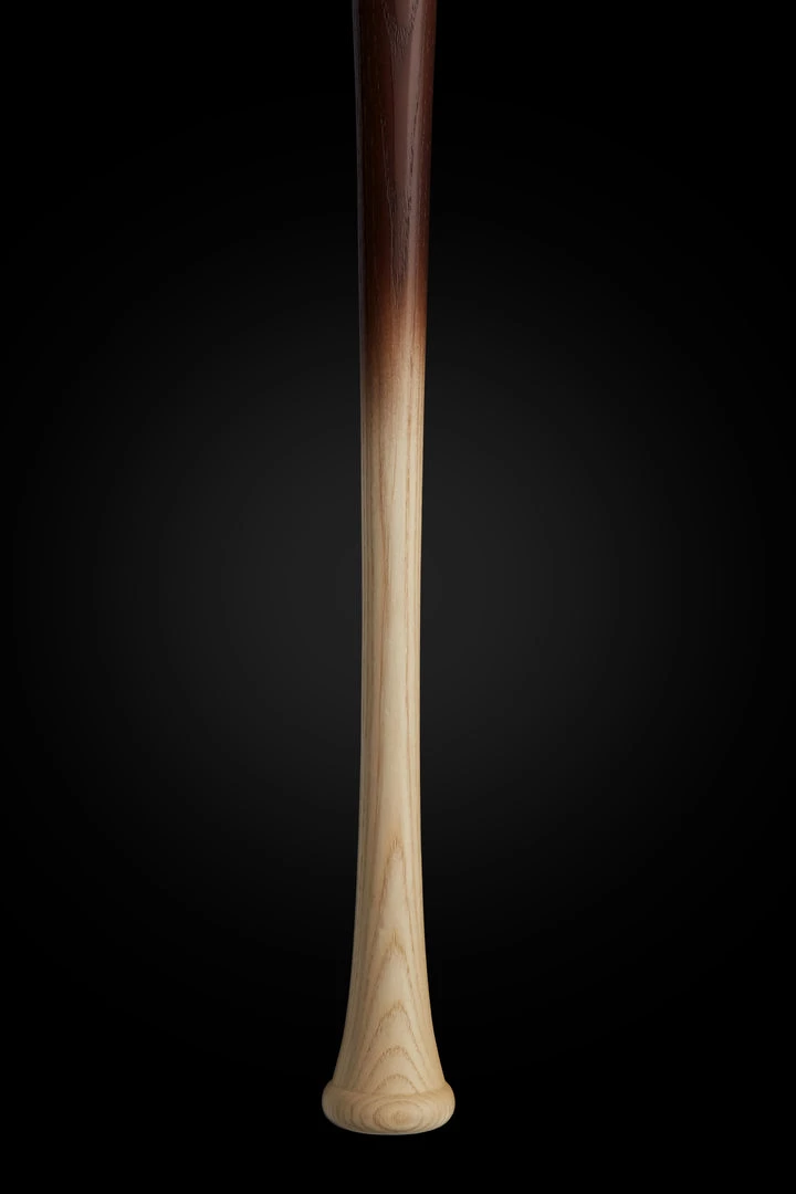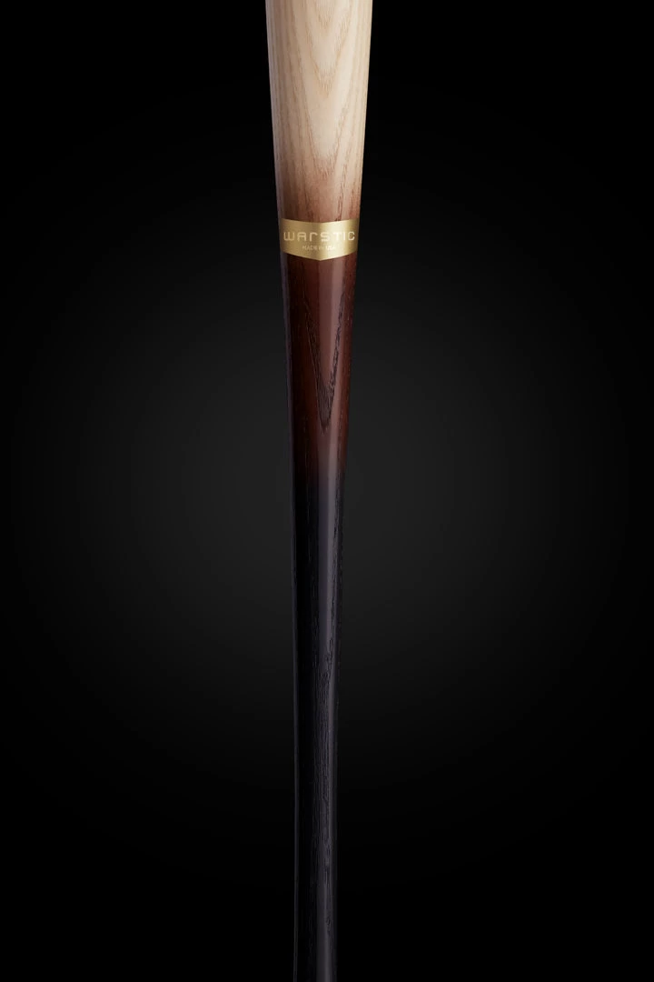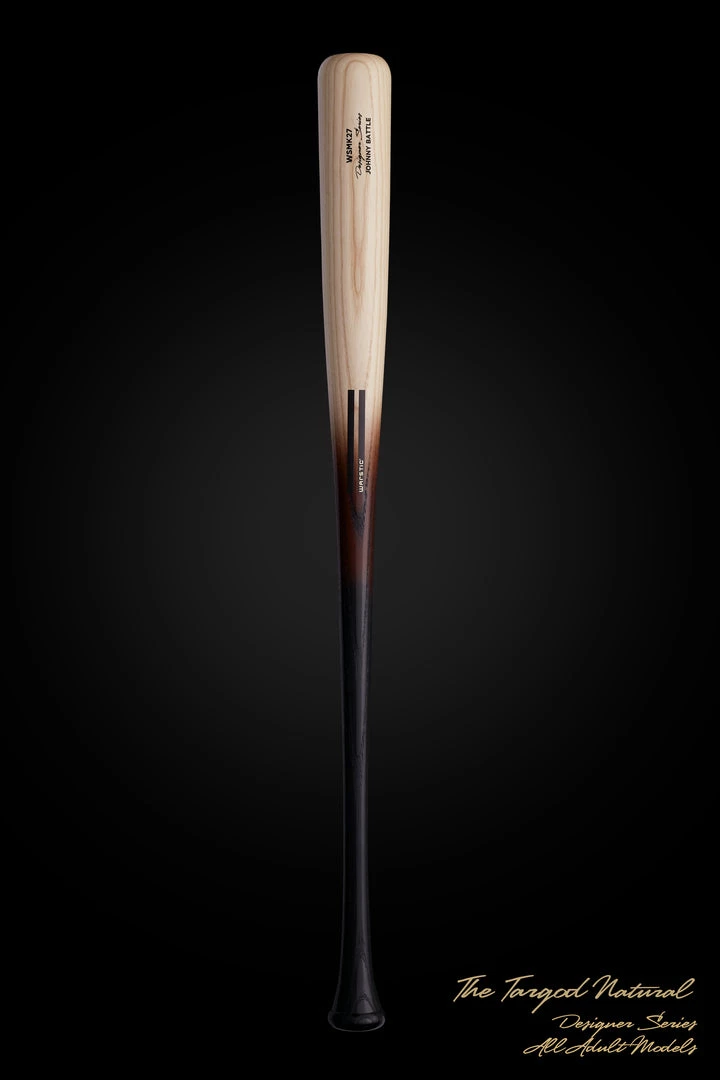 The Targod Natural by Warstic Designer Series bat combines a half dip natural stain with a tobacco mid-fade over a gloss black handle with black logo and black engraving. Available in our most popular adult turning models.