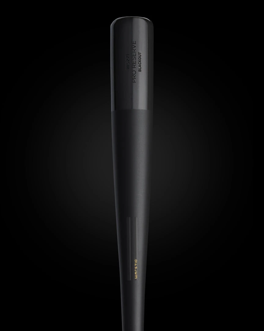 The Blackout by Warstic has been updated from its original Designer Series color scheme, now it’s a matte black full dip bat with glossy black Wartip, black logo and engraving. Cut from our Pro Reserve stock of maple. As part of the exclusive, small batch release, “Blackout” is engraved on the barrel of the bat.
