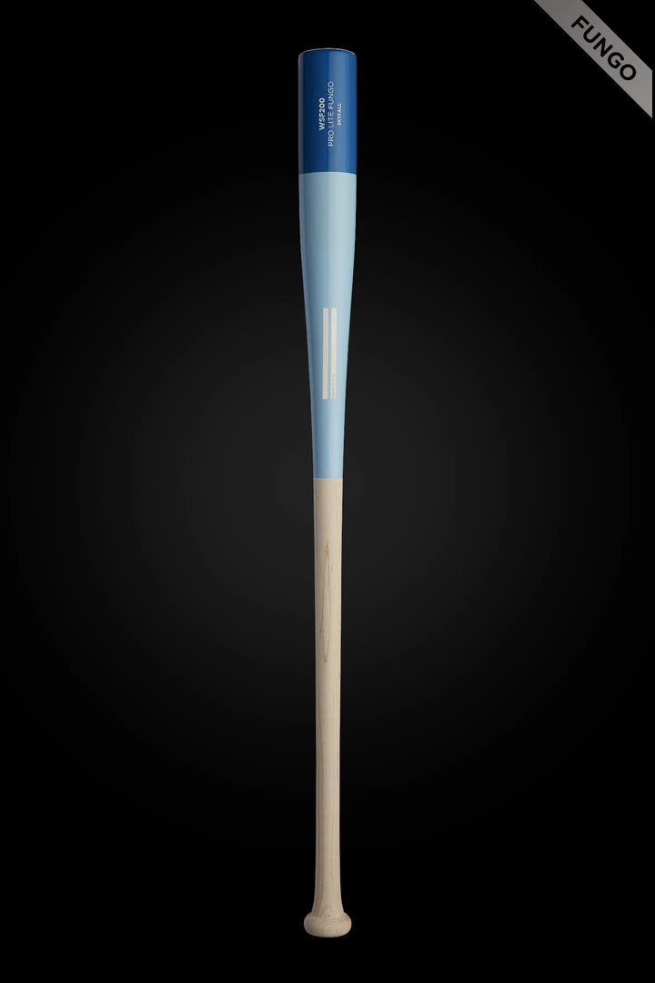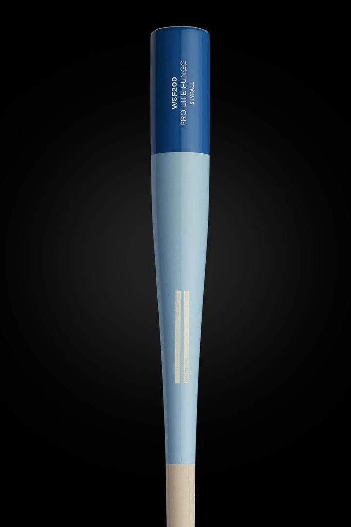 The Skyfall WSF200 35″ Fungo by Warstic has an ocean half dip barrel with a royal Wartip, raw handle, and white engraving. Cut from our top 10% reserve stock of maple, the Warstic logo is engraved onto all Designer Series wood bats. As part of the exclusive, small batch release, “Skyfall” is engraved on the barrel of the bat.