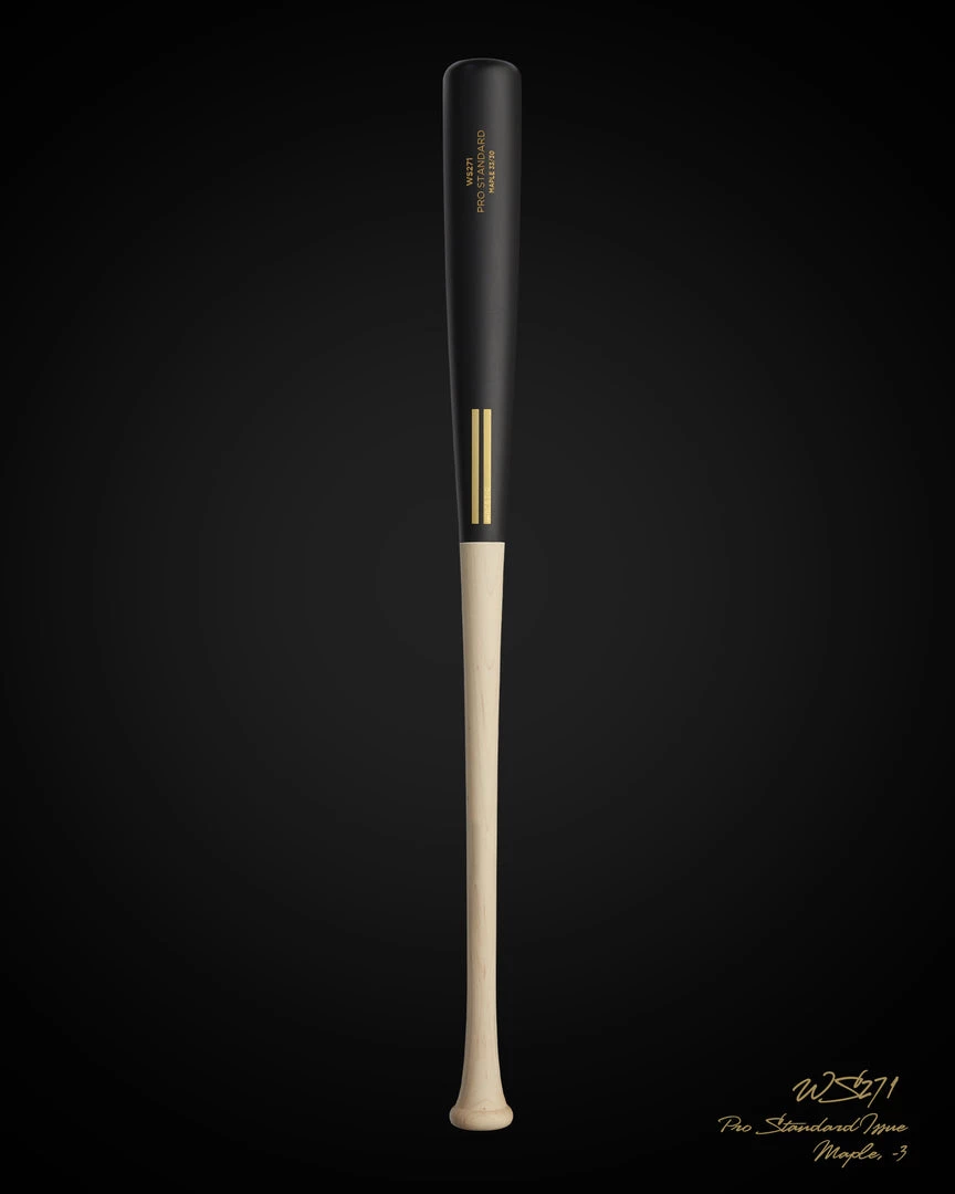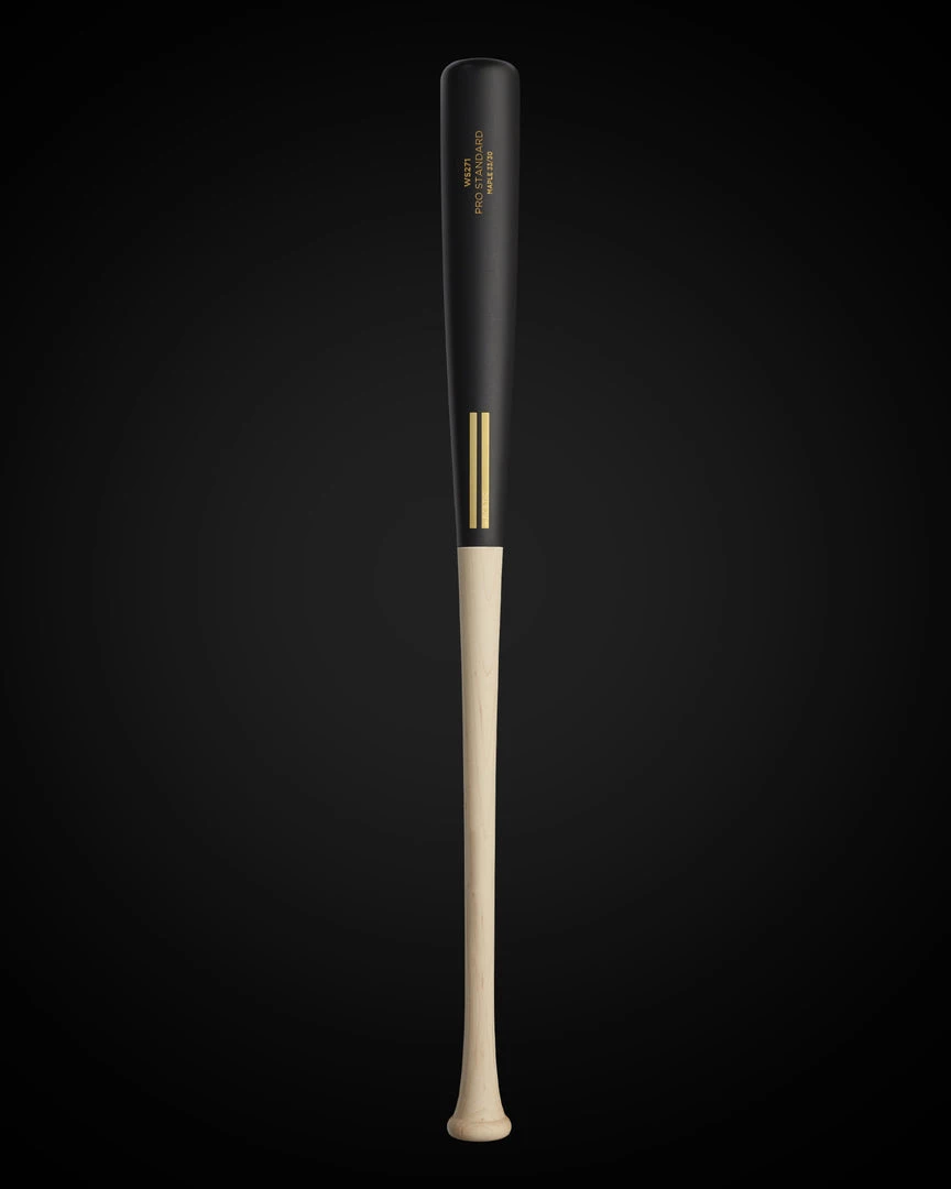 The Pro Standard Issue WS271 Maple Wood Bat has a tapered knob and balanced feel; approximately -3 drop weight. The WS271 Maple has a matte black half dip stain and gold engraving. Cut from our top 10% reserve stock of maple. No custom engraving or customization available on this model. In stock and ready to ship!