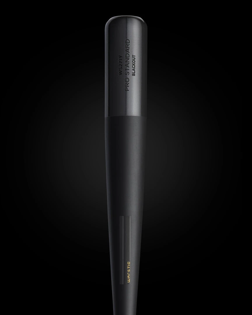 The Blackout WS271Y Wood Bat by Warstic has been updated from its original Designer Series color scheme, now it’s a matte black full dip bat with a glossy black Wartip, black logo and engraving. Cut from our top 10% reserve stock of maple. As part of the exclusive, small batch release, “Blackout” is engraved on the barrel of the bat.