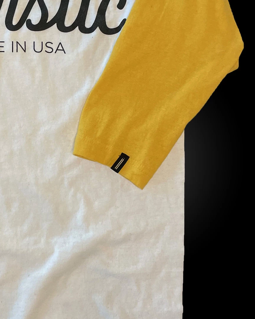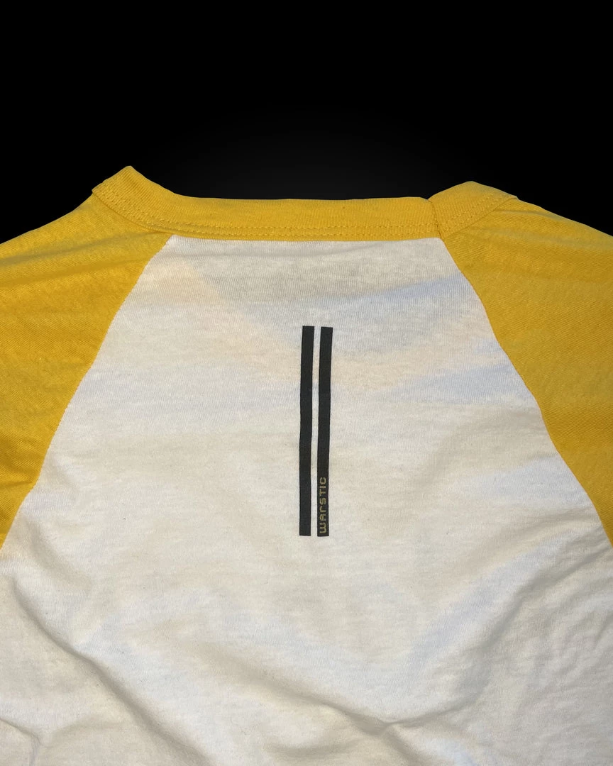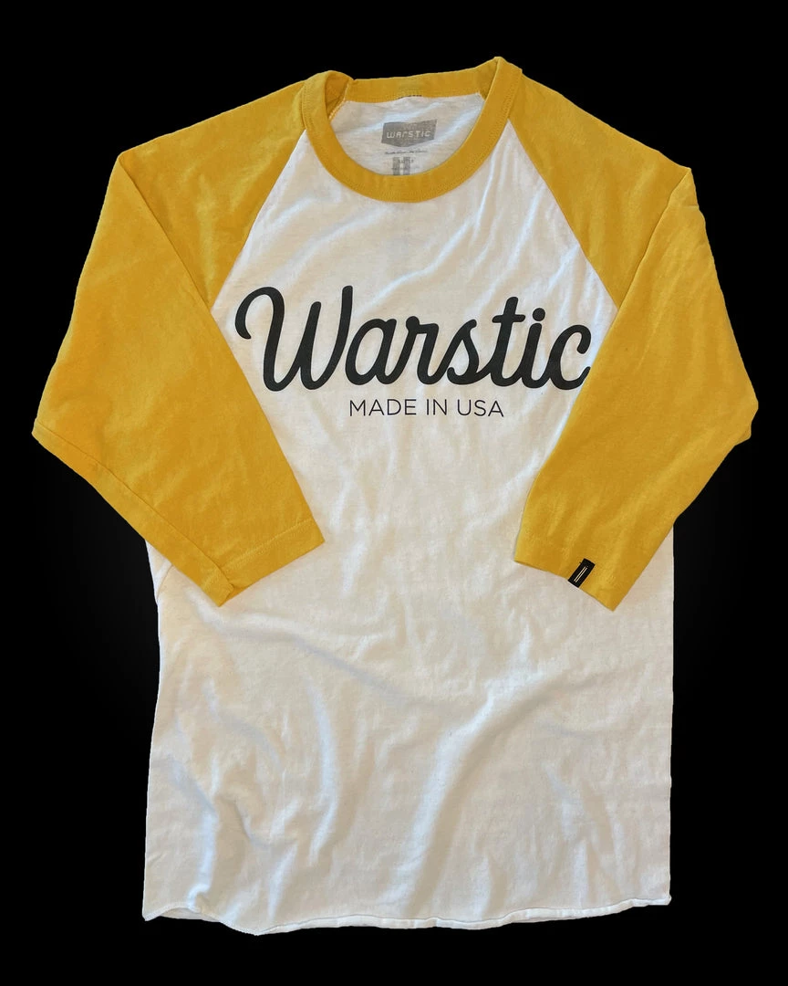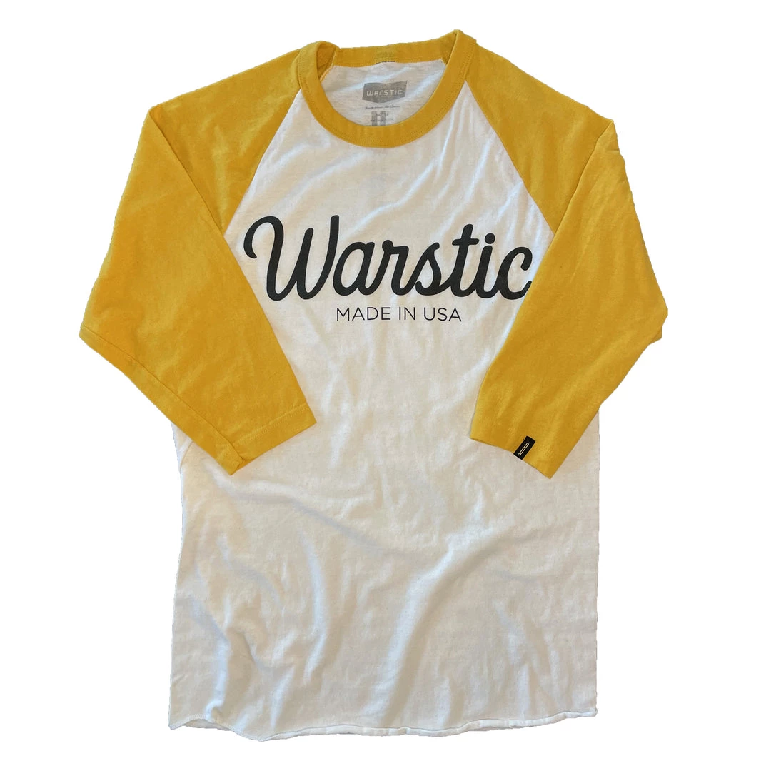 The Warstic© Script 3/4 Sleeve Jersey Tee (White/Yellow) is your go-to for tshirt and jeans or a pickup sandlot game. With our classic “Warstic” script logo, it has a vintage vibe that will look even better the more you wear it.