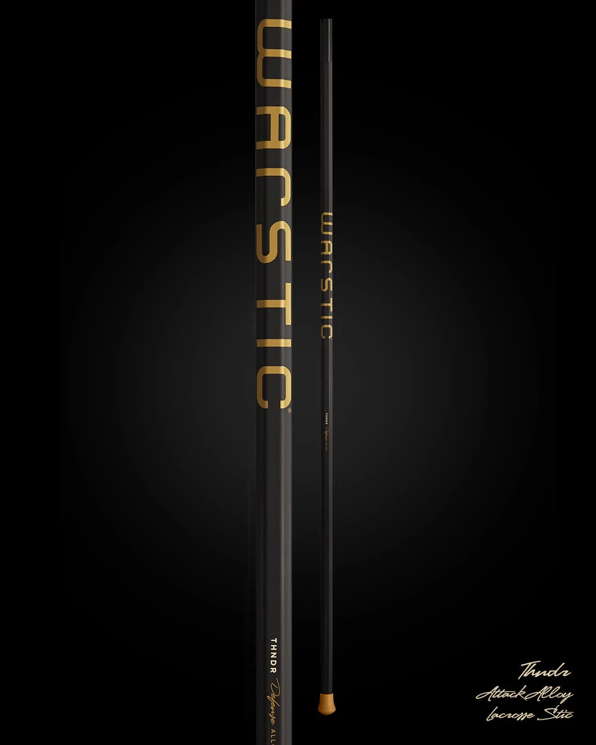 Introducing the Warstic THNDR Defense Lacrosse Shaft. Built for Lacrosse athletes who play with a warrior’s mentality and have an appreciation for precision, substance and style. Made with aerospace grade aluminum, which provides superior tensile strength at 92 ksi. Taking cues from our baseball bat designs, the shaft features our iconic Wartip look (the glossy end section, with a matte finish on the rest of the shaft) and our one of a kind Pommel Precision end cap.