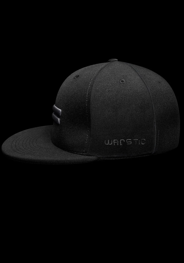 The Warstripe Fitted Stretch – Black features raised embroidered Warstripes in smoke color. Warstic embroidered on side of hat. Stretch fit, six-panel design; polyester/spandex blend.